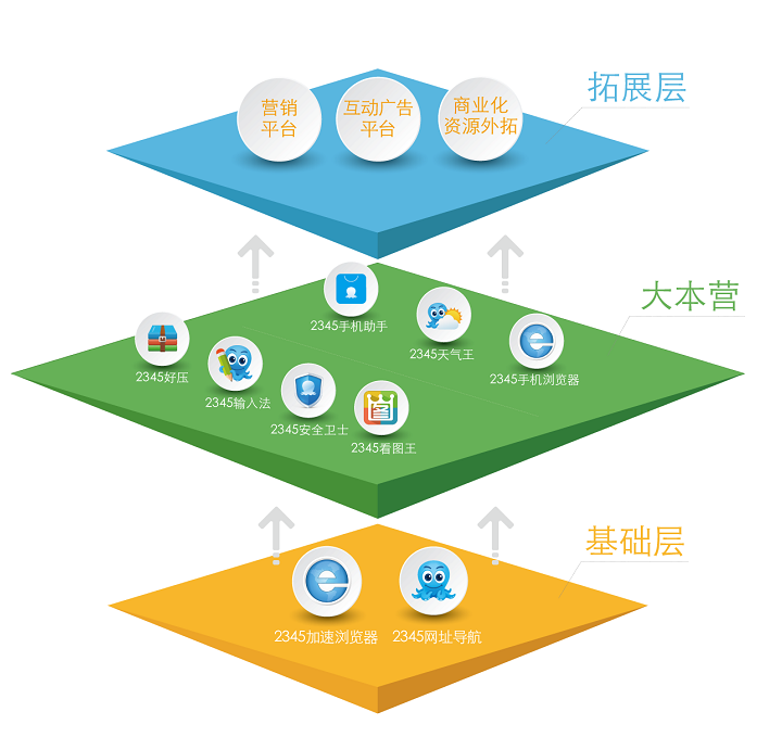 上海二三四五網(wǎng)絡(luò)科技有限公司致力于打造網(wǎng)民首選的上網(wǎng)入口平臺,旗下?lián)碛?345網(wǎng)址導(dǎo)航、2345好壓、2345瀏覽器、2345看圖王、2345輸入法、2345天氣王等知名網(wǎng)站和軟件產(chǎn)品,覆蓋互聯(lián)網(wǎng)用戶超過3.76億,是國內(nèi)為數(shù)不多的擁有億萬級用戶平臺的公司。