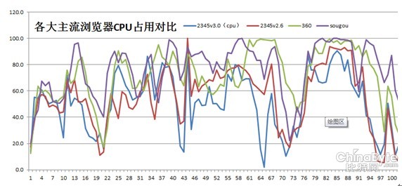 經(jīng)過(guò)測(cè)試,在CPU占用方面,2345瀏覽器3.0版本占用量最少,其次為2.6版本,搜狗瀏覽器和360瀏覽器占用量基本持平。整體來(lái)看,2345瀏覽器2個(gè)版本的CPU占用量均小于其他兩款瀏覽器,能讓電腦保持穩(wěn)定運(yùn)行及快速處理。