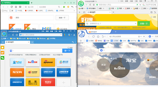 亮點(diǎn)功能。在激烈的市場(chǎng)競爭里,用戶相對(duì)較多的這幾款瀏覽器都有自己主打的功能特點(diǎn):360安全瀏覽器主打上網(wǎng)安全,采用惡意網(wǎng)址攔截技術(shù)自動(dòng)攔截掛馬、欺詐、網(wǎng)銀仿冒等惡意網(wǎng)址;2345加速瀏覽器新增云安全中心,實(shí)施攔截危險(xiǎn)網(wǎng)站,有效識(shí)別釣魚網(wǎng)站,保護(hù)千萬用戶上網(wǎng)安全;UC瀏覽器新版本主打購物積分特色,設(shè)有UC瀏覽器高倍積分專享通道;QQ瀏覽器則因?yàn)榕cQQ的密切關(guān)系,登錄QQ瀏覽器后,可以直接登錄任何QQ網(wǎng)頁服務(wù)。