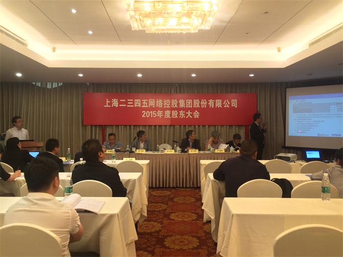 上海二三四五網(wǎng)絡(luò)控股集團(tuán)股份有限公司(以下簡稱“公司”)第六屆董事會第一次會議于2016年5月18日下午在上海市肇嘉浜路777號青松城大酒店4樓嵩山廳以現(xiàn)場和通訊表決結(jié)合的方式召開,本次會議通知于2016年5月11日以電子郵件方式發(fā)出。應(yīng)參加審議董事9人,實際參加審議董事9人。本次董事會由陳于冰先生召集并主持,符合《中華人民共和國公司法》和《公司章程》的有關(guān)規(guī)定,會議有效。