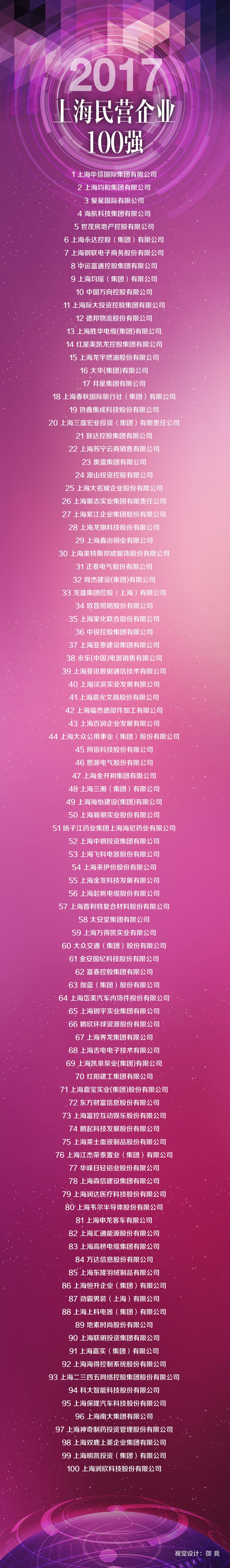 8月28日,由上海市企業(yè)聯(lián)合會(huì)、上海市企業(yè)家協(xié)會(huì)、上海市經(jīng)濟(jì)團(tuán)體聯(lián)合會(huì)聯(lián)合發(fā)布了2017上海企業(yè)百?gòu)?qiáng)榜。上海二三四五網(wǎng)絡(luò)控股集團(tuán)股份有限公司(簡(jiǎn)稱“二三四五”,股票代碼002195)榮登“上海民營(yíng)企業(yè)100強(qiáng)”第93位, 成為上海本土互聯(lián)網(wǎng)企業(yè)備受矚目的中堅(jiān)力量。