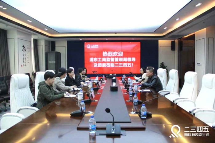 2019年11月22日,十九大代表、上海浦東市場監(jiān)管局注冊許可分局黨總支副書記徐敏,注冊科三科科長王連鳳,團支部書記蔡文灝等一行蒞臨上海二三四五網(wǎng)絡控股集團股份有限公司(以下簡稱“二三四五”,002195.SZ)總部考察交流、指導工作,二三四五集團總裁辦主任康峰、二三四五團支部書記王思朝等相關負責人陪同座談。