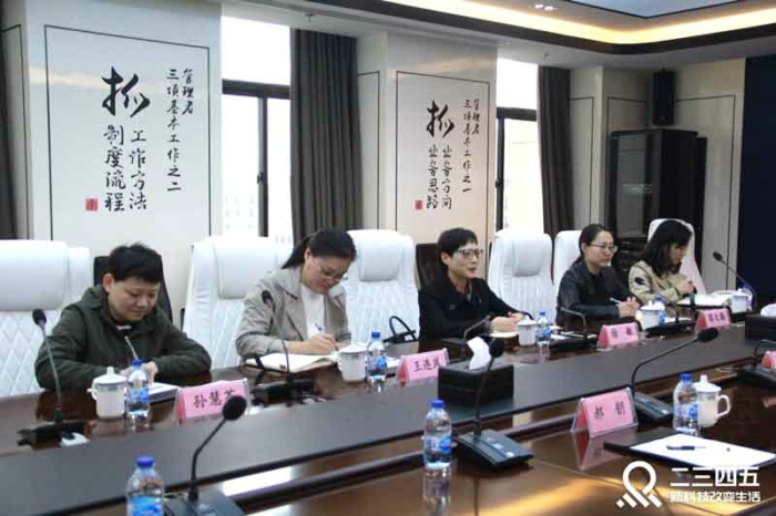 二三四五集團團支部書記王思朝向一行領導匯報了二三四五團支部建設工作。二三四五員工以29歲左右的青年為主,充滿活力。在二三四五集團黨支部的引領和熏陶下,二三四五于今年9月份成立了團支部。作為二三四五黨支部的新生力量,團支部定將在黨支部的領導下開展工作,緊密圍繞黨支部的中心任務開展各項活動,積極發(fā)揮黨建帶團建的“五帶”作用。