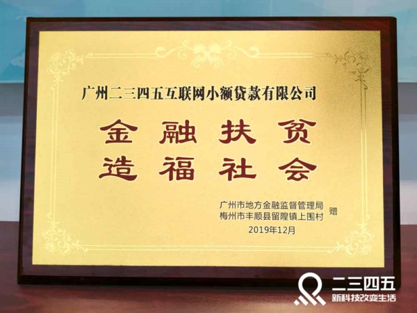 12月18日廣州市金融局召開廣州市金融行業(yè)扶貧工作會議,對2019年助力扶貧的企業(yè)進行授牌,并授予二三四五旗下子公司廣州二三四五互聯(lián)網(wǎng)小額貸款有限公司(以下簡稱“廣州二三四五小貸公司”)“金融扶貧 造福社會”榮譽。