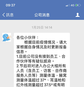 于是1月25日,農(nóng)歷大年初一,二三四五再次發(fā)布通知,提醒全員加強健康報備以及其他防疫注意事項。