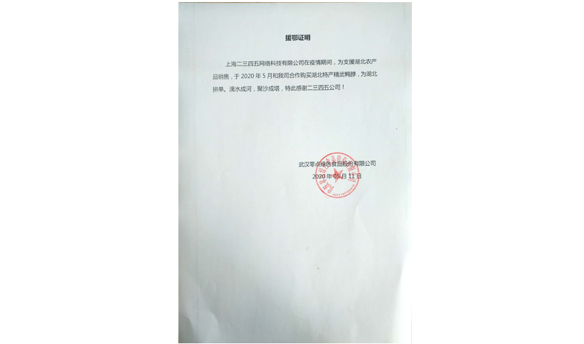 人間四月芳菲盡,湖北經(jīng)濟(jì)復(fù)蘇時(shí)。5月,上海二三四五網(wǎng)絡(luò)控股集團(tuán)股份有限公司(以下簡稱“二三四五”,002195.SZ)和湖北當(dāng)?shù)睾献魃缂肮S取得聯(lián)系,采購一批湖北特產(chǎn),并為湖北特色農(nóng)產(chǎn)品直播帶貨,為湖北經(jīng)濟(jì)復(fù)蘇貢獻(xiàn)一份力。