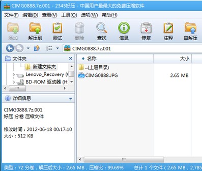 再比如001格式,這個(gè)格式是7z老式分卷,當(dāng)看到這種莫名的文件格式時(shí),不妨請2345好壓解壓縮軟件來幫忙,可以完全支持這種格式的解壓。